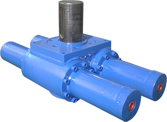 UB型齒輪齒條擺動油缸是將液壓能轉換為機械能,實現往復擺動的執行元件。它是帶齒輪齒條機構的組合液壓缸。往復直線運動的活塞-齒條帶動齒輪正反向回轉,并輸出轉矩。